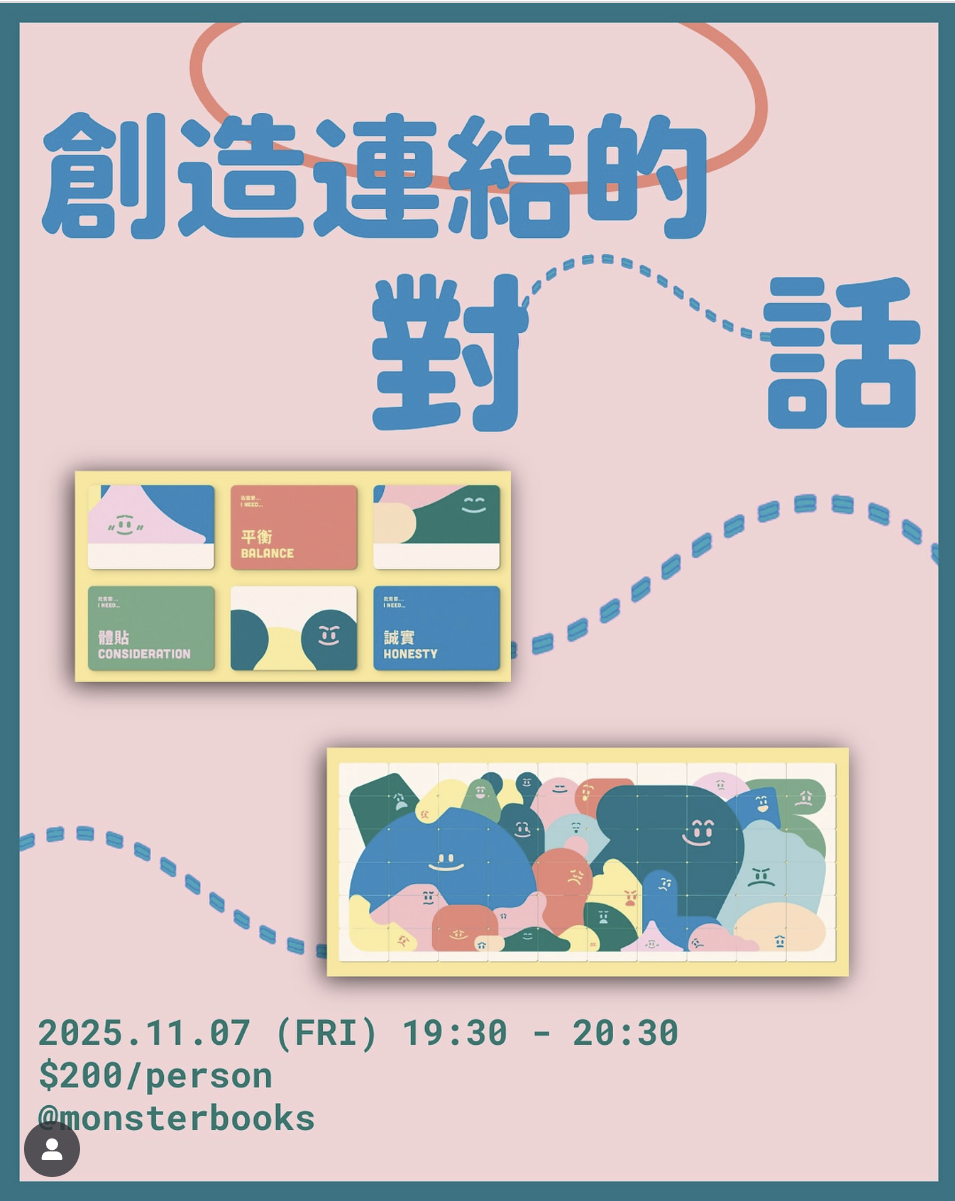 是次入門工作坊將會介紹“連結.對話”的核心理念,認識“連結.對話卡”及“同步卡”這兩套輔助工具,並透過圍爐方式,讓大家淺嘗“連結.對話”。